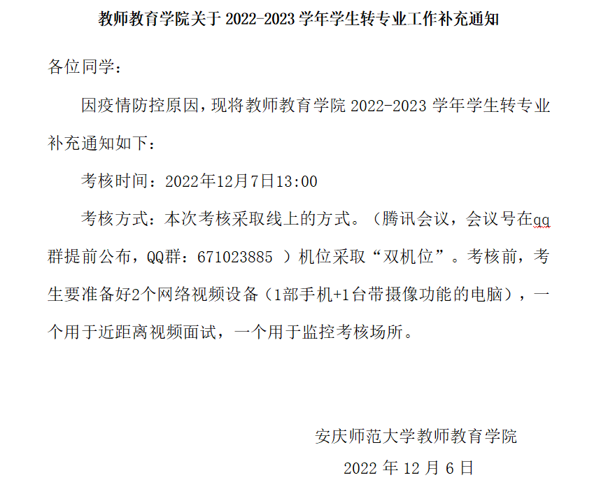 教师教育学院关于2022-2023学年学生转专业工作补充通知