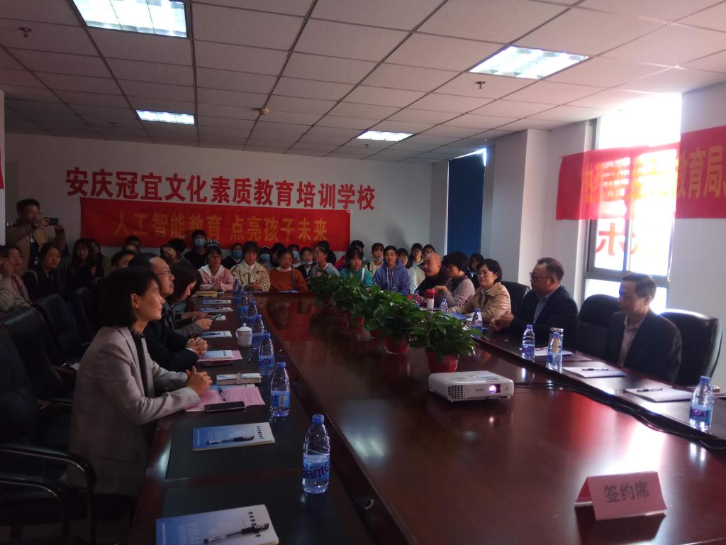 冠宜教育学校校长喻红首先致辞,简单介绍了冠宜教育学校办学历史,“松鼠AI”智适应教育开展情况,表达了对教育实习基地建设和持续发展的期待。经开区教育局高管王贵忠则表示,校地合作、校校共建是教育发展的新举措,教育局将全力支持把教育实习基地建好。随后,教师教育学院吴云助院长作重要讲话。吴院长表示,此次与冠宜教育建立合作关系,是贯彻落实“三位一体”协同育人理念的需要,是“举师范旗、走应用路、创特色牌”的需要,更是“以生为本”培养卓越教师的需要。希望双方开展形式多样的合作,以便更好地服务师生,服务基础教育事业的发展。