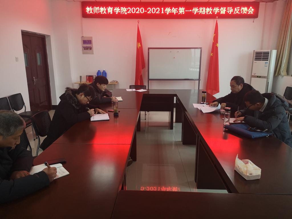 召开2020-2021学年第一学期教学督导反馈会,校教学督导团督导员张启树、雒有谋出席会议并反馈意见。学院党委副书记许世平、团总支负责人方泽宇及教务科全体人员参加了会议。会议由许世平主持。