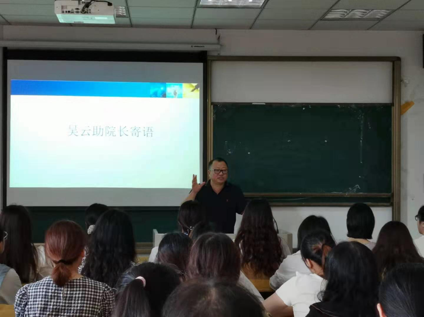 2021级硕士研究生入学教育在J219教室举行。院长吴云助出席并发表迎新寄语,2021级全日制研究生45人全部参加。会议由辅导员彭文超主持。