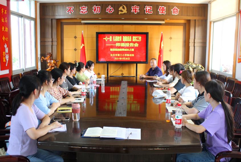 石化三小副校长陈琼栋首先对学生们的到来表示欢迎。接着,他以“一心一意,扎根教育,勤勤恳恳,踏实工作”为主题作了师德专题报告。他结合丰富的教育案例,生动而深刻地阐释了《中小学教师职业道德规范》的内容和意义,并以自己32年的教书育人经历为线索,通过丰富的案例、珍贵的照片、与学生相处的动人故事,以及当年援疆经历,分享了自己教书育人的工作经验和思考,诠释了教师工作的重要使命与非凡意义,展现了自己对学生和教育的热爱。