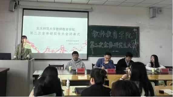 根据会议要求采取无记名投票的方式,选举产生出席学校第三届研究生代表大会代表、主席团候选人预备人选及教师教育学院第二届研究生委员会委员;大会最后就收集到的个人提案和团体提案进行审议,有效提案共43份,涉及到教育教学、成长成才、权益维护、生活服务等,由杨睿做《安庆师范大学教师教育第二次全体研究生大会提案工作报告》。最后全体起立,奏唱共青团团歌,大会圆满落下帷幕。