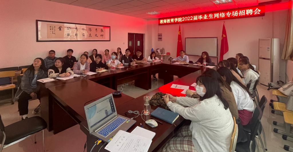 在J楼202会议室举办了2022届毕业生网络专场招聘会。学院党委副书记许世平、特殊教育系主任郭启华、学院就业秘书汪洋洋出席,学院近200名学生通过线上参加招聘会。