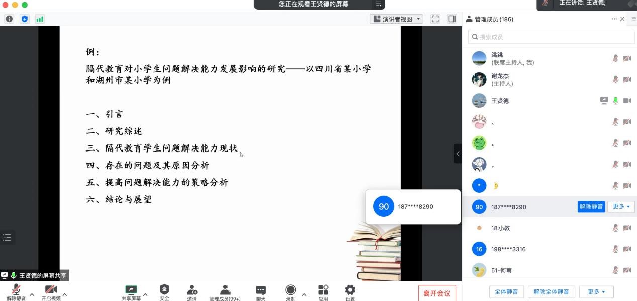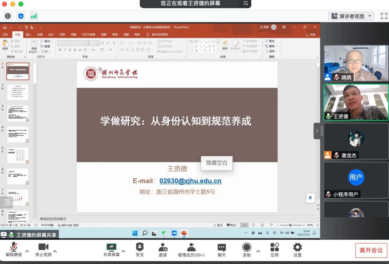 优秀毕业生,湖州师范学院教师教育学院王贤德博士做了题为《学做研究:从身份认知到规范养成》的学术报告,报告由初等教育系主任诸园教授主持,小学教育专业近300名本科生和硕士研究生线上聆听了报告。