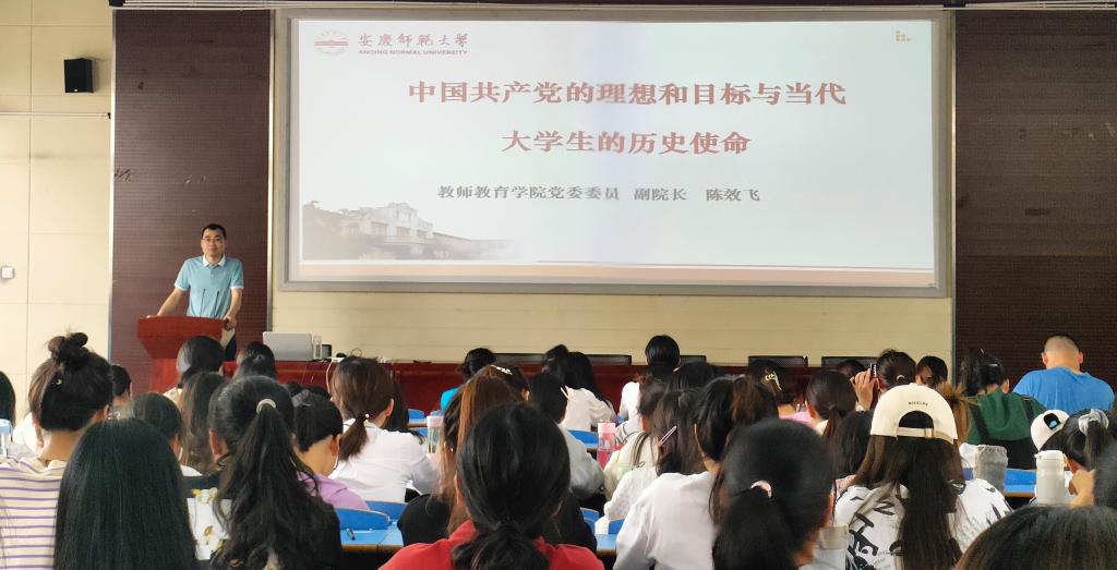 于D111开展“中国共产党的理想和目标与当代大学生的历史使命”专题党课,教院党委委员、副院长陈效飞主讲。