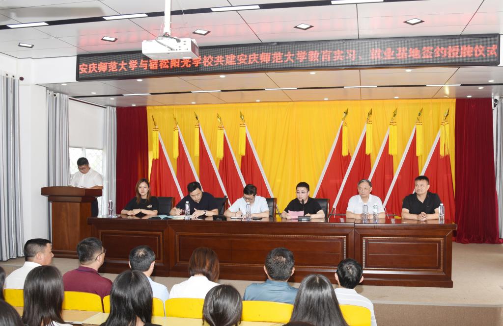 许世平一行实地考察了宿松阳光学校,听取了阳光学校的运营、人才培养模式、顶岗实习情况、就业需求情况,介绍了学习和学院的办学特色和优势,完成了与阳光学校共建安庆师范大学教育实习、就业基地的签约授牌,并与学校负责人就下一步的深度合作进行了深入交流。