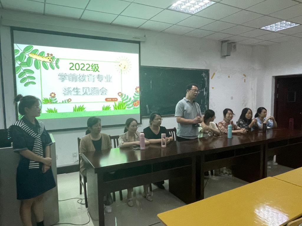 学前教育2022级新生专业教育暨师生见面会在J305教室召开。学前教育系主任高向东、副主任冯艳慧以及专任教师出席见面会,该专业2022级全体新生参加会议。会议由新生辅导员唐道琴主持。