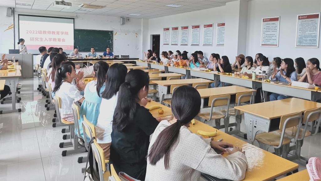 9月14日下午,在教师教育学院305举办了2022级研究生入学教育会。出席本次会议的有教师教育学院党委副书记许世平、副院长陈效飞、研究生导师代表赵子刚博士、研究生秘书查怀志、2022级研究生辅导员薛珊、研究生会代表以及2022级全体研究生。