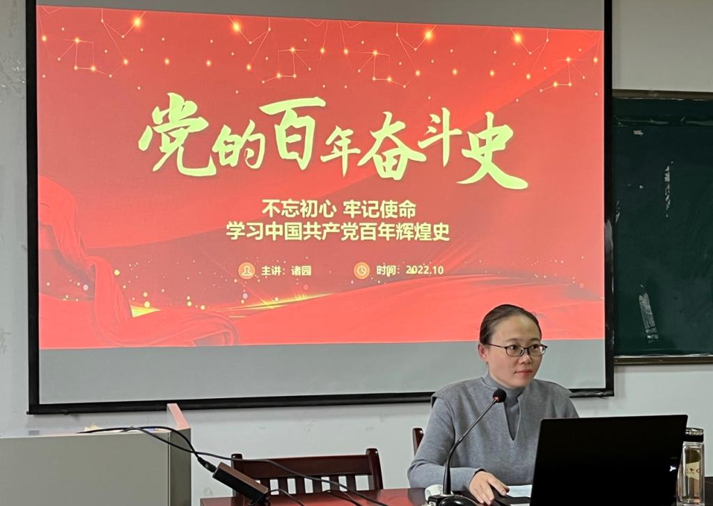 于J305开展“党的百年奋斗历史”专题党课,由党委委员、副院长诸园主讲。