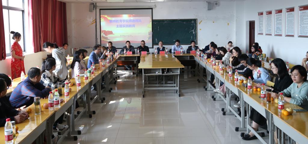 于J305教室开展学习党的二十大精神暨师德师风主题教育实践活动。校团委书记汪洋、人事处副处长刘晓飞、学院领导班子及全体教师参加会议。活动由学院党委书记陈志超主持。