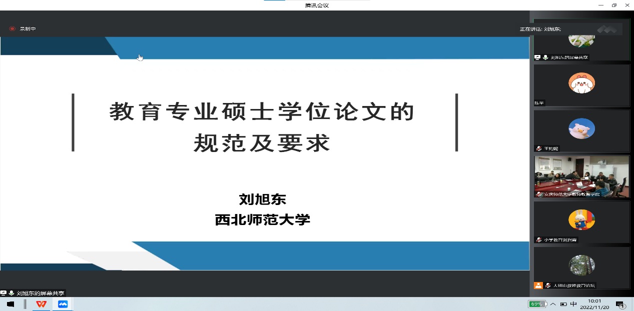 邀请全国教育专业学位研究生教育指导委员会委员、全国教育基本理论专业委员会委员、全国课程论专业委员会理事、甘肃省“飞天学者”、西北师范大学二级教授、博士生导师刘旭东教授作题为“教育专业硕士学位论文的规范及要求”的学术报告。报告会由教师教育学院执行院长吴云助主持,研究生院院长华秀梅、教师教育学院相关领导、学校教育硕士研究生导师及研究生共150余人参与此次学术活动。