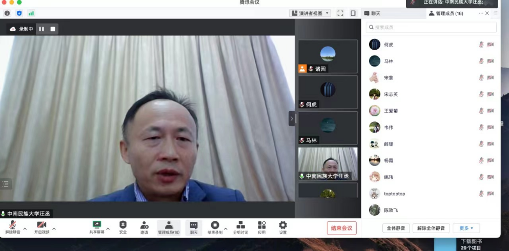 汪教授从自己的科研经历、课题申报经验谈起,对国家社科基金的申报流程、申报原则、申请书的撰写要领作了详细介绍。他认为,国家社科基金选题要新颖,要有明确的问题意识。问题既是中心,是研究的起点,也是主线,是研究的归宿。一个好的问题能够弥补研究领域的空缺。申报书的撰写要提高政治站位,主动对接国家重大战略,把国家需求和个人兴趣充分结合起来,积极呼应时代的主题。他还提醒大家撰写申请书一定要重视逻辑,突出亮点,尽早着手准备,多看成功的标书,并与相关专家广泛交流,多方面听取意见,对申请书进行精心打磨。