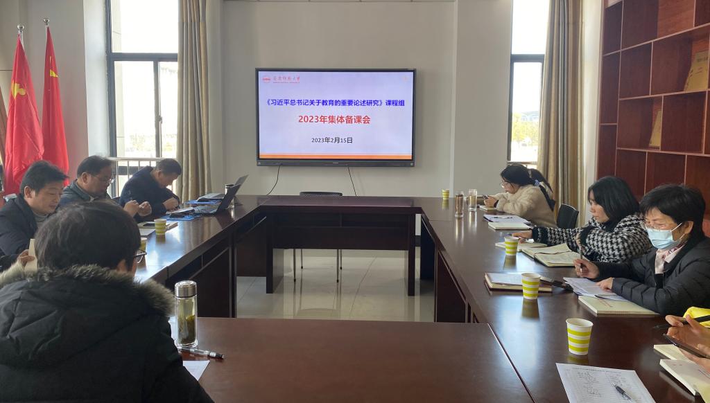 于J202会议室召开《习近平总书记关于教育的重要论述研究》课程组2023年集体备课会,该课程组代表教师参加会议,学校教务处到会指导。会议由学院党委副书记许世平主持。