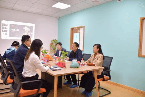 在座谈会之后,赵旭峰带领我们参观了小海龟儿童心理康复中心、华周心理咨询中心,并表示将来有意愿吸纳心理学、康复医疗学、特殊教育专业毕业生。宋志英代表学院慰问了往届在此就业的学生,学生见到老师都非常开心,纷纷感谢学院、老师的关心。最后,王皓宇、宋志英代表学校进行就业实习基地授牌。