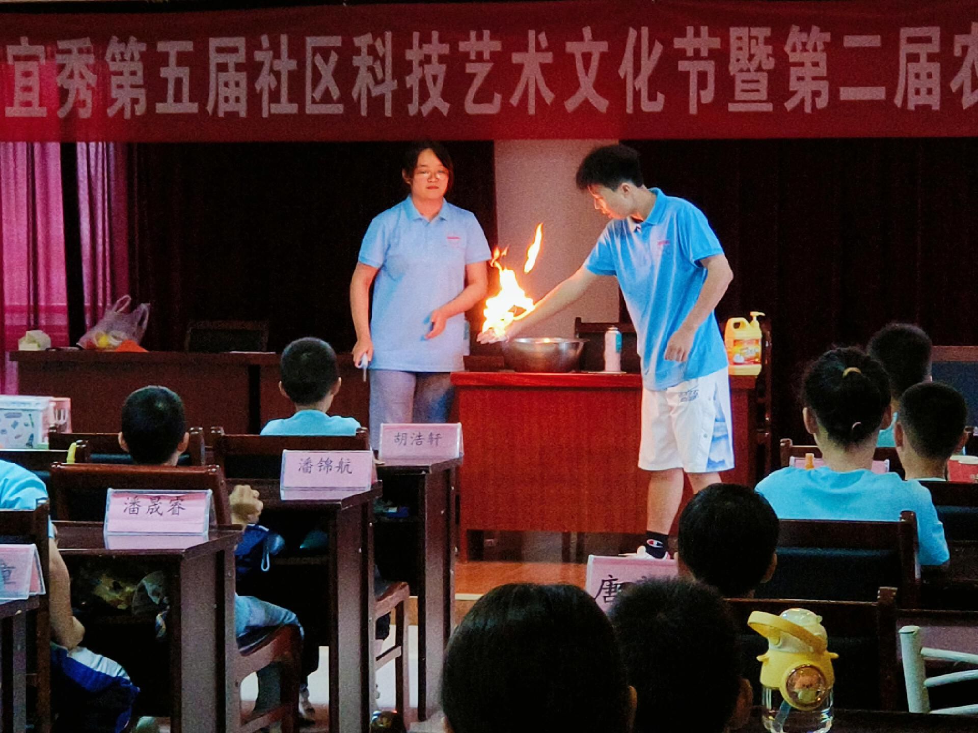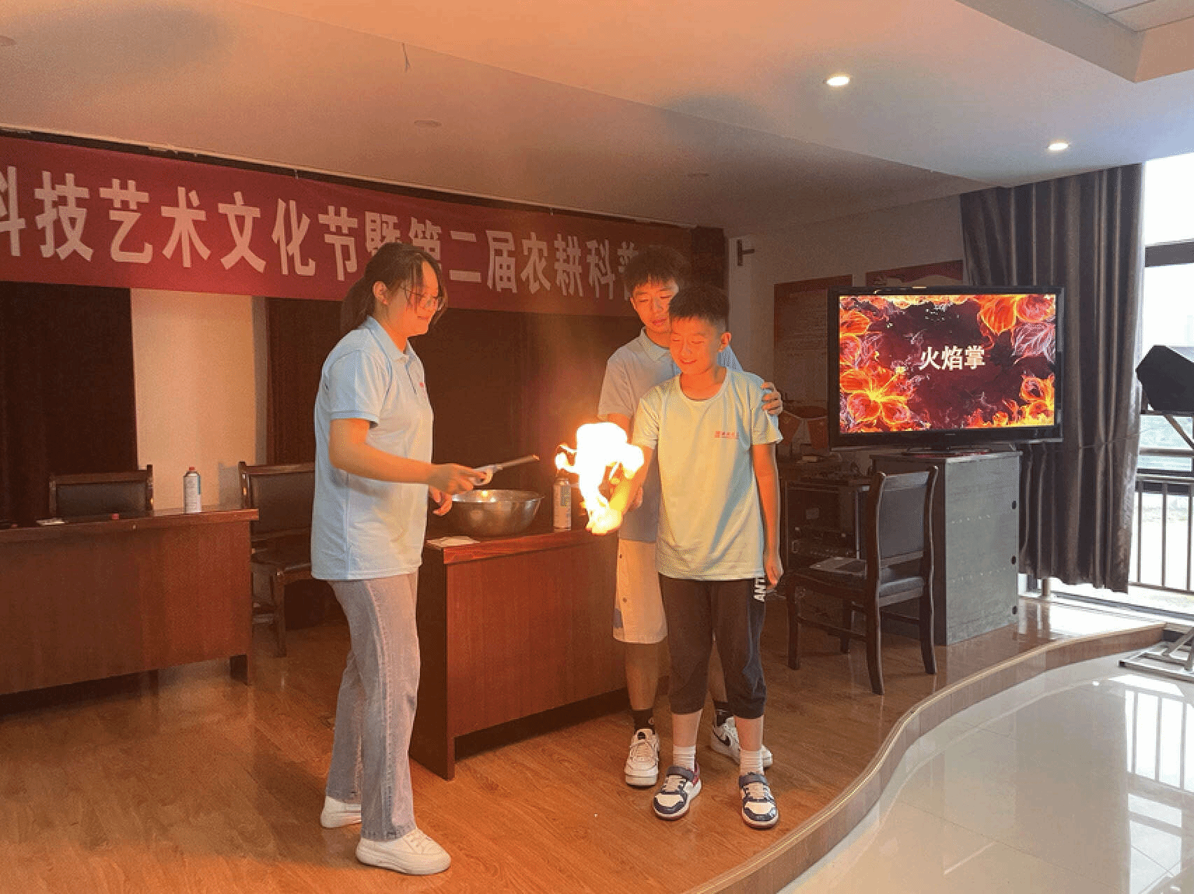 7月8日,安庆师范大学教师教育学院“科学筑梦,智引未来”教育关爱实践团带领2023宜秀科技艺术文化节43名小朋友开展第三节特色化学实践课程——“火焰掌”,让孩子们零距离感受科学的神奇魅力。
