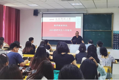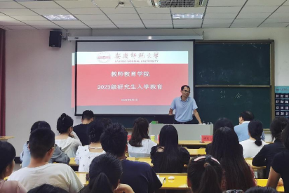 在J109举办了2023级研究生入学教育会。出席本次会议的有教师教育学院执行院长吴云助、副院长陈效飞、研究生党支部书记后娇娇、研究生导师代表彭文超、2023级研究生辅导员张峰峰、研究生会代表以及2023级全体研究生。
