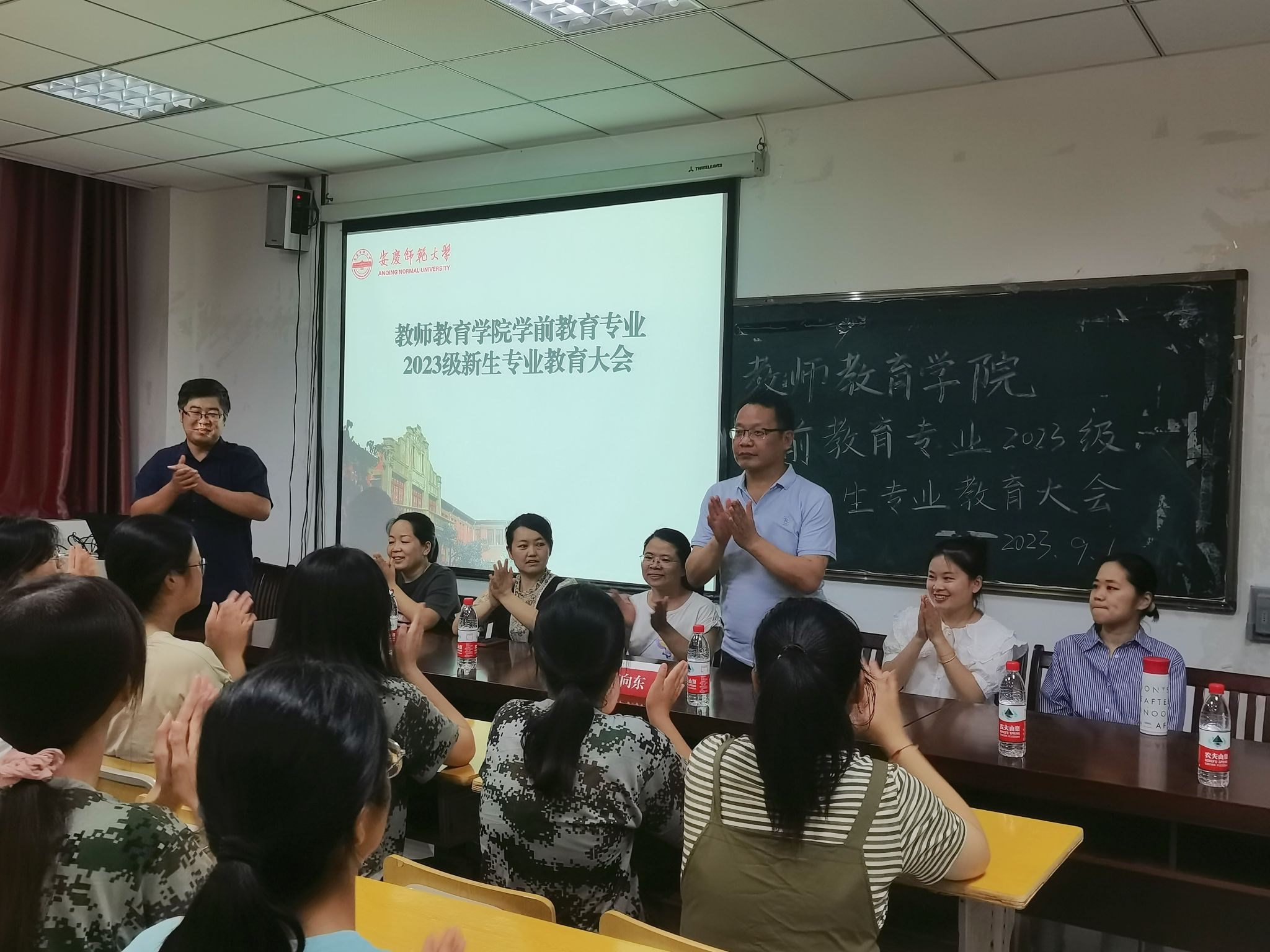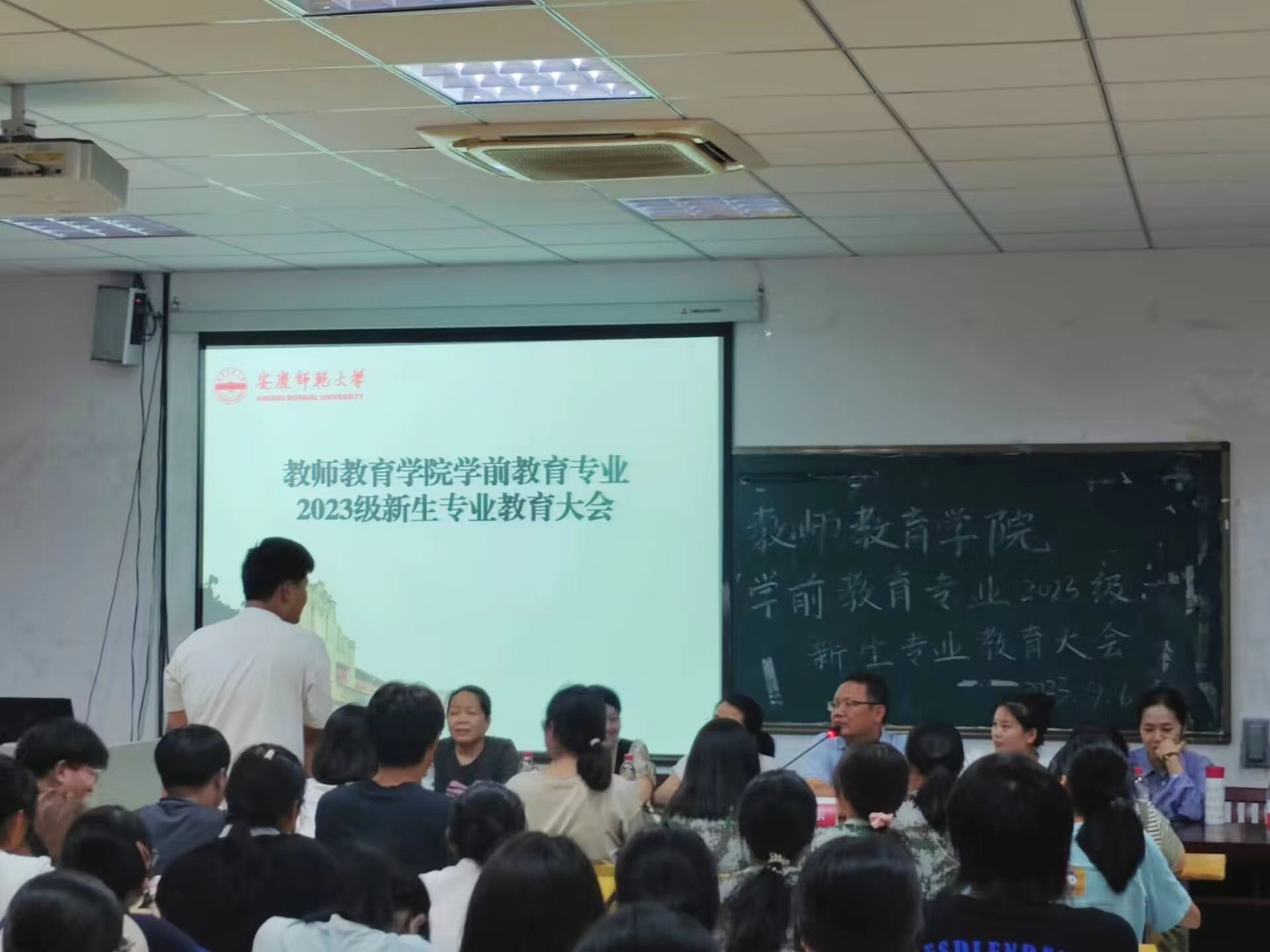 学前教育2023级新生入学教育暨师生见面会在J305教室召开。学前教育教研室主任高向东、副主任冯艳慧以及专任教师出席见面会,该专业2023级全体新生参加会议。会议由新生辅导员严峻主持。