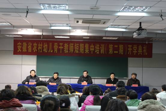 3月3日上午,“幼儿国培计划”——安徽省农村幼儿骨干教师短期集中培训(第二期)开学典礼在文溯楼406教室隆重举行。教务处副处长黄兴帅、教育学院党总支书记黄警钟、教育学院院长曹长德、学前教育教研室主任高向东出席典礼。来自全省各地的80多名农村幼儿教师参加了此次开学典礼,本次典礼由教育学院副院长韩建华主持。