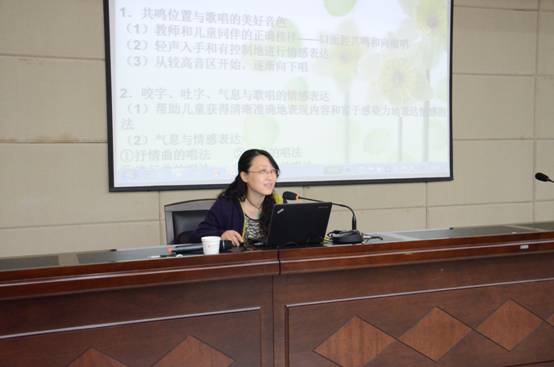 讲座伊始,史莉老师在动人音乐的配合下,和国培班学员一起为大家献上了一场精彩的舞蹈表演,充分调动了学员们的积极性。在讲座中,史莉老师指出,环境是重要的教育资源,提供丰富的生活和良好的活动环境将有益于幼儿身心健康的发展。而从我们身边去寻找,去发现可以用来制作成玩教具的废旧材料,不但方便、节约和环保;而且能够最大程度的满足教学需求;更最重要的是能够体现地方特色。除此之外史莉老师还为学员们详细的分析了“什么是废旧材料”,“废旧材料从哪里来”;“废旧材料可以用来做哪些玩教具”;并充分地例举了以往老师和学生们自制的精致玩教具,其中包括:报纸类,纸盒类、自然物类以及综合类等,既丰富了学员们的视野,也激发了学员们的灵感。讲座结尾,史莉老师再一次展示了动人的舞蹈表演。