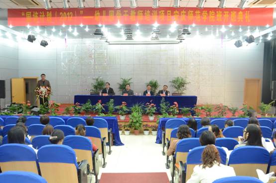 10月24日上午,“国培计划(2012)”幼儿园骨干教师——教育部示范性培训项目开班典礼在安庆师范学院菱湖校区图书馆学术报告厅隆重举行。校教务处处长张元广教授、副处长黄兴帅副教授,教育学院院长曹长德教授、党总支书记黄警钟副教授、教育部示范性培训项目负责人高向东教授出席了开班典礼。典礼由教务处副处长黄兴帅副教授主持。