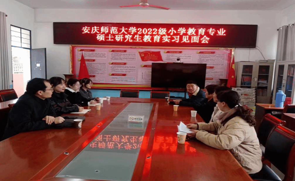2022级小学教育硕士研究生赴月山镇中心学校实习,启动仪式在月山镇中心学校会议室举行。安庆师范大学教师教育学院副院长陈效飞、月山镇中心学校副校长冯停、月山镇中心学校教师李月平、张启红、刘风琴及三位2022级小学教育硕士研究生参加本次会议。