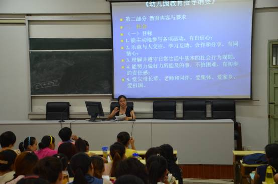 教育科学院吴玲教授来到历史悠久、风景如画的安庆师范学院,为国培计划(2013)——安徽省幼儿园骨干教师置换脱产培训班的学员作《学前儿童社会性发展与教育》、《幼儿园教学游戏化及其发展》主题讲座。