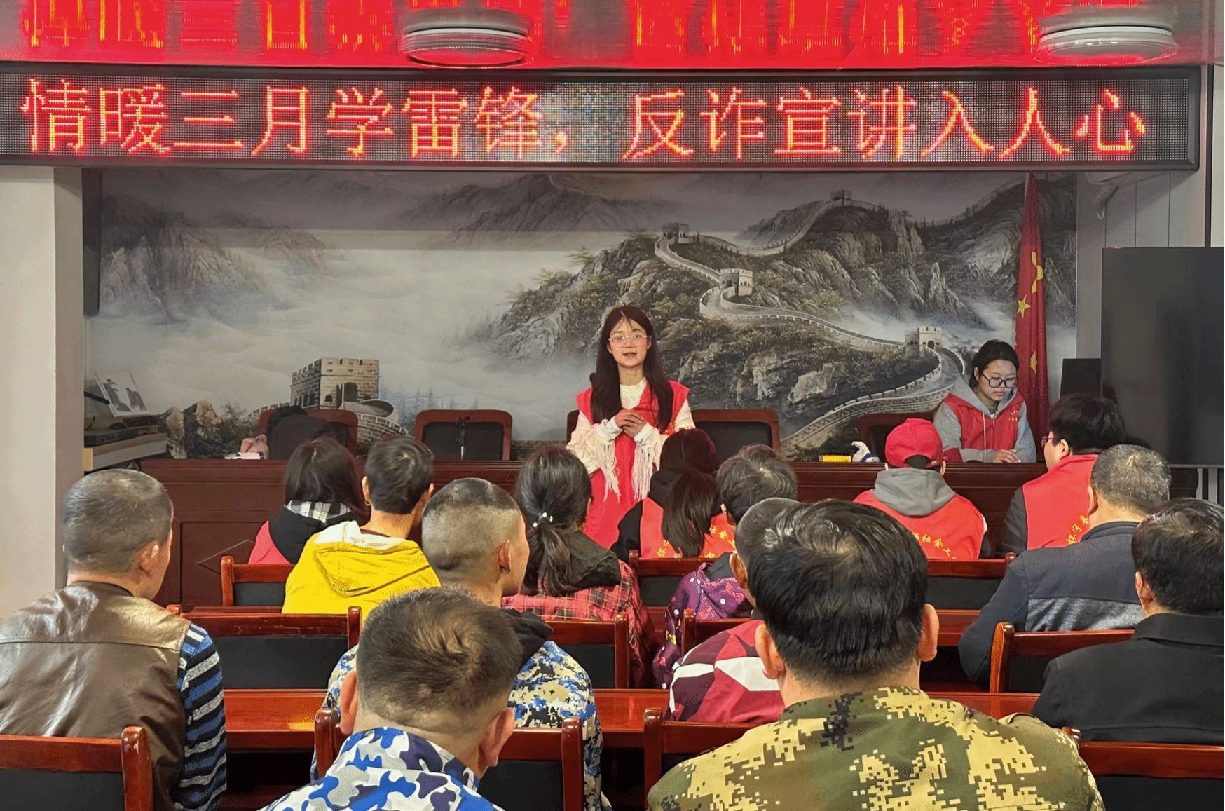 学子组队前往怀宁县乐邦残疾人托养服务中心,开展“情暖三月学雷锋,反诈宣讲入人心”主题志愿服务活动。