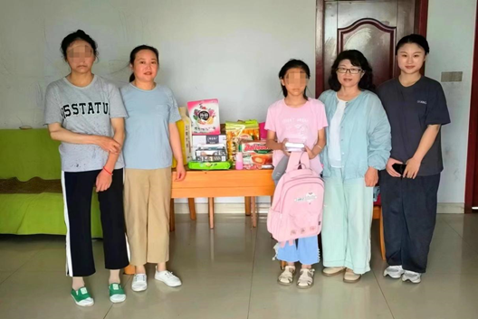在秦潭村妇联主席陈盈的带领下,特殊教育专业师生与党员志愿者一起来到帮扶儿童家中,与孩子面对面交流,向家长详细了解了孩子生活、学习情况和目前面临的困难,并对孩子进行心理疏导,科普暑期防溺水知识,鼓励她乐观向上、不畏挫折、努力学习,并为帮扶儿童家庭送上生活用品和学习用品等物资。