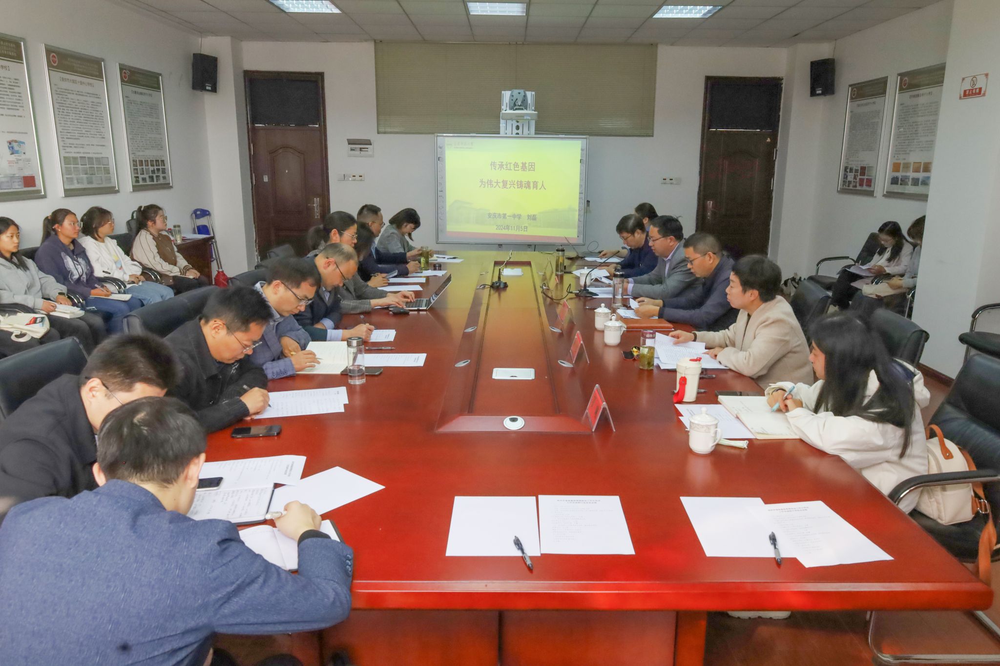 刘磊以“传承红色基因,为伟大复兴铸魂育人”为题介绍了安庆一中示范点的建设情况。他介绍了安庆市第一中学的发展历程及师生队伍,从深挖革命资源固信仰之“本”、赓续延乔精神散信仰之“叶”、推进大思政课建设开信仰之“花”三个方面总结了学校的思政育人工作。他表示,安庆市第一中学高度重视基础思想政治工作建设,深入挖掘红色校史,打造特色课程“延乔班”,将思想政治工作与社会大课堂相结合,凝心聚力、铸魂育人。