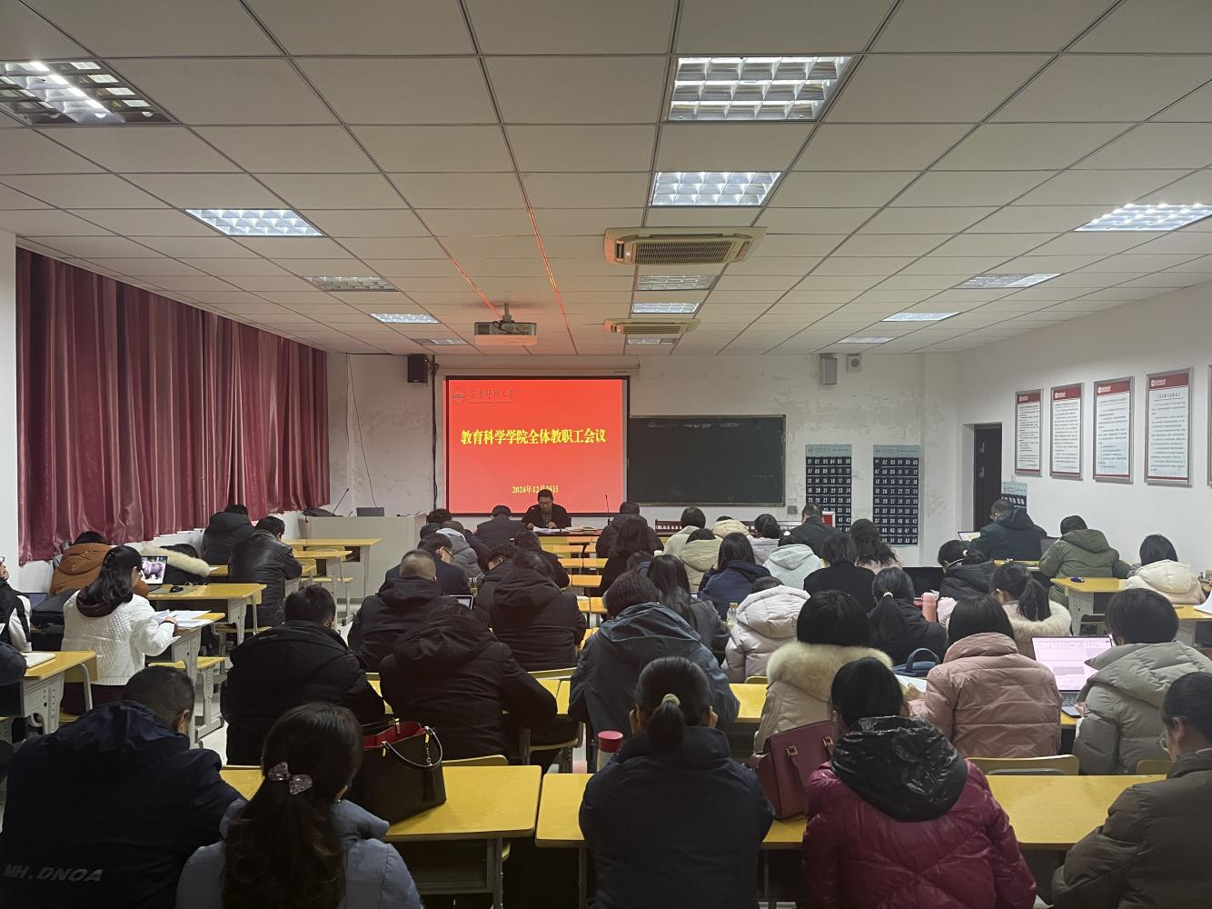 召开全体教职工会议。会议由党委书记何孔蛟主持。