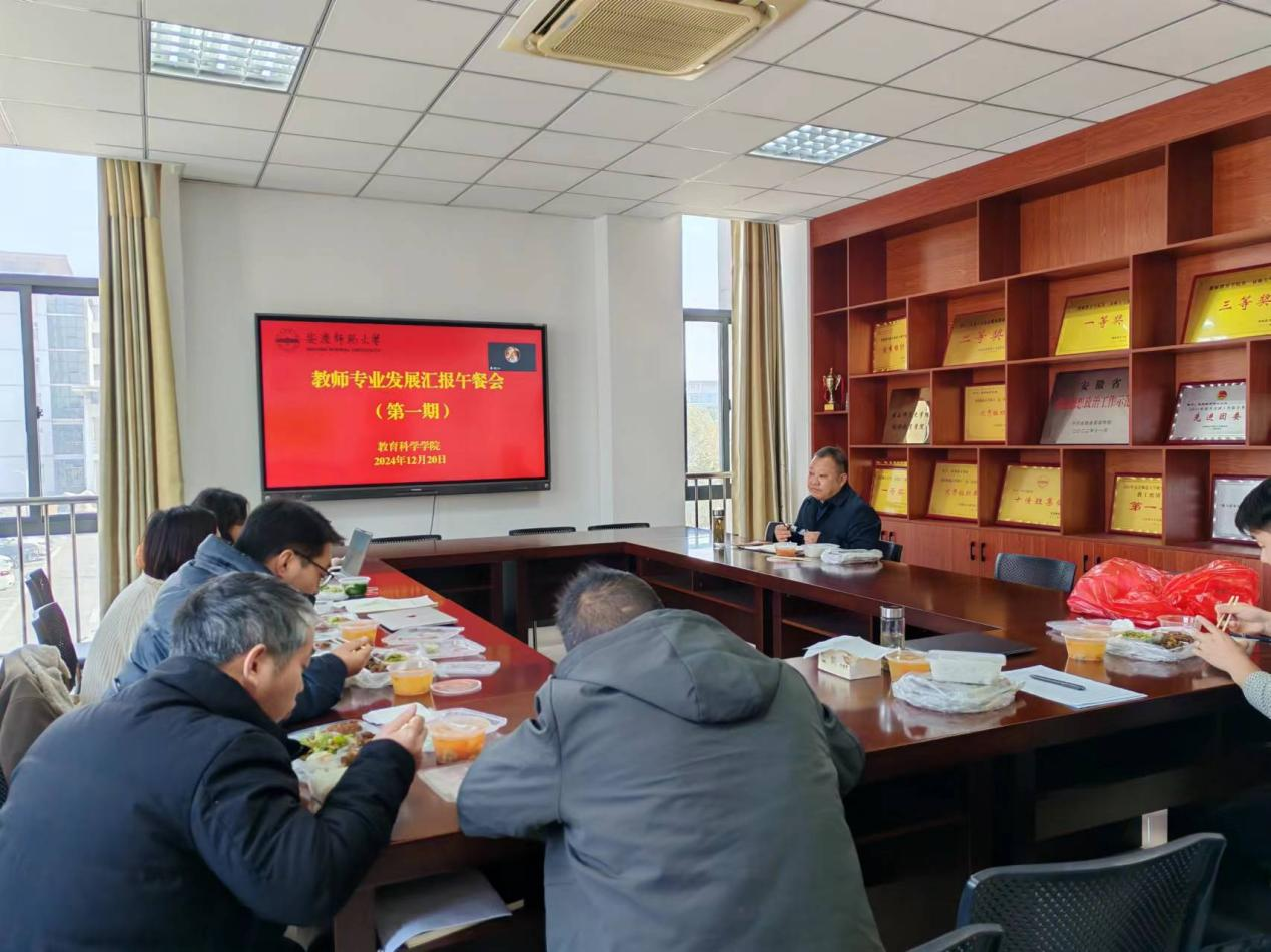 举行第一期教师专业发展汇报午餐会,院领导吴云助主持会议,公共教育学教研室全体教师参会。