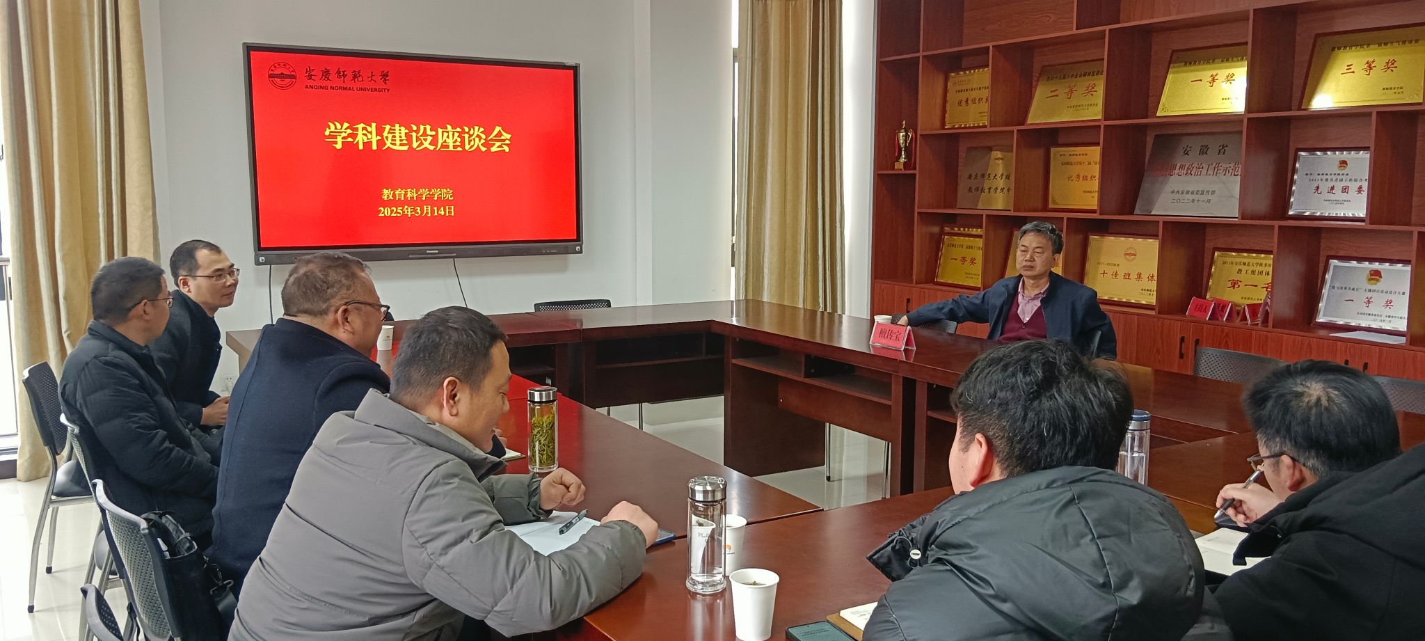 组织召开学科建设专题座谈会。本次会议特邀北京师范大学教育学部檀传宝教授指导。学院党委书记何孔蛟、院长吴云助、副院长陈效飞、王皓宇及部分教师参会。