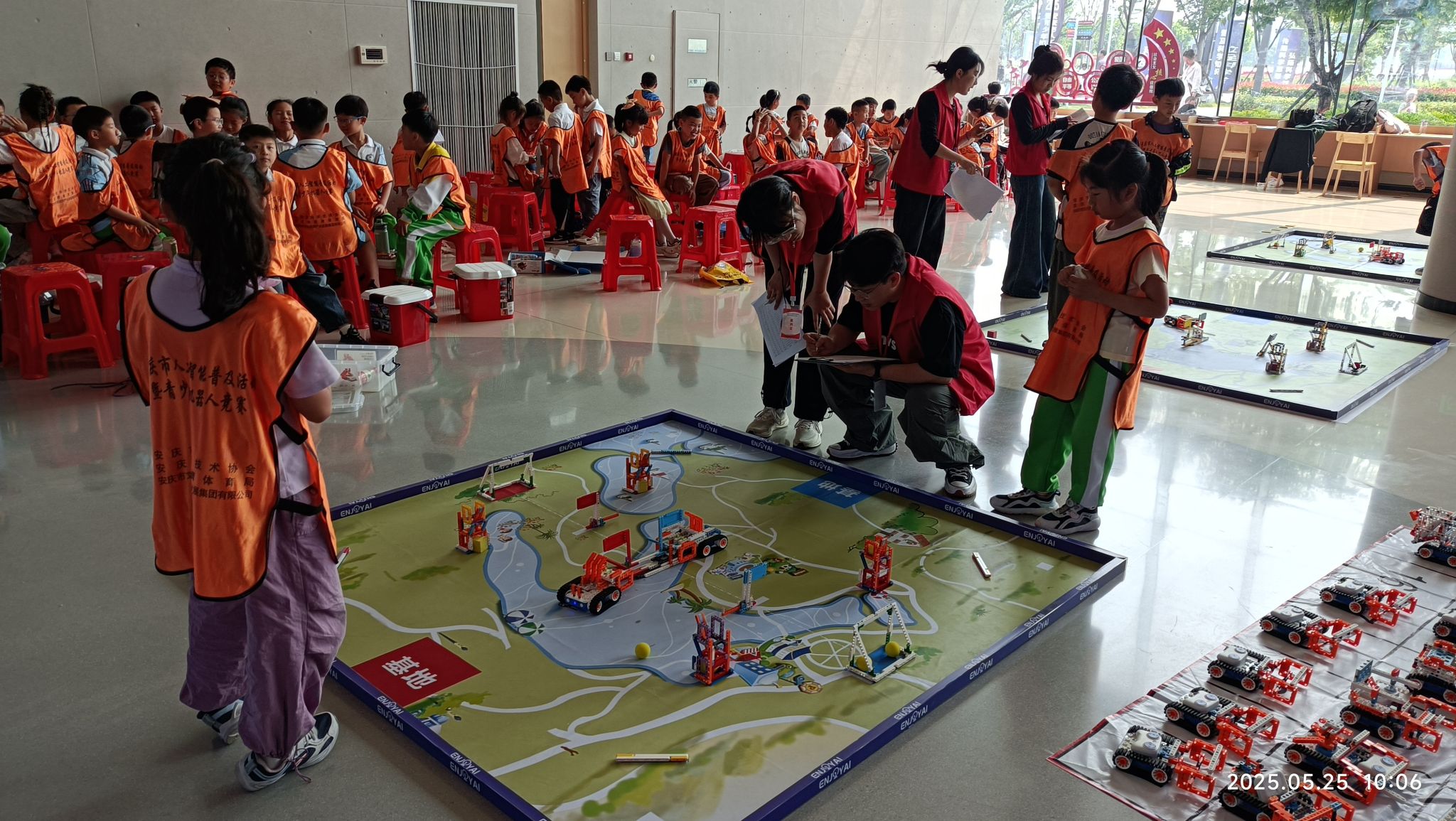 5月25日,2025年安庆市人工智能普及活动暨青少年机器人竞赛在滨江ECD油罐生态文化中心举行。来自安庆市三区七县的幼儿园、中小学校共292支队伍,660名师生参加2个赛道、4个大项、17个小项的角逐。此次竞赛由安庆市科学技术协会、安庆市教育体育局、安庆市文化旅游产业发展集团有限公司、安庆市图书馆主办。