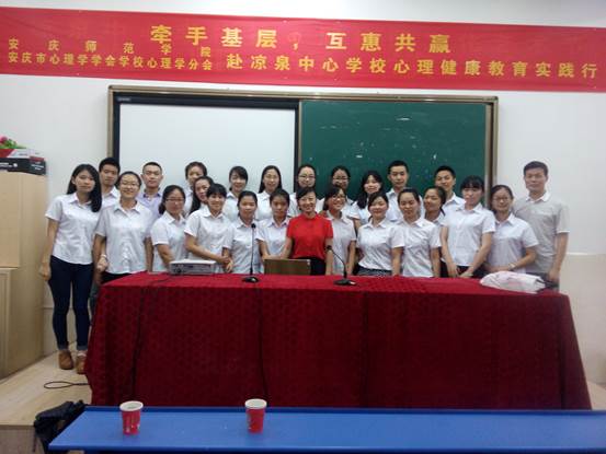 2015年6月17日下午,由安庆师范学院教育学院宋志英教授、严云堂副教授带领24名2012级应用心理学专业学生共赴望江凉泉中心小学,开展“小学生心理健康教育”活动。