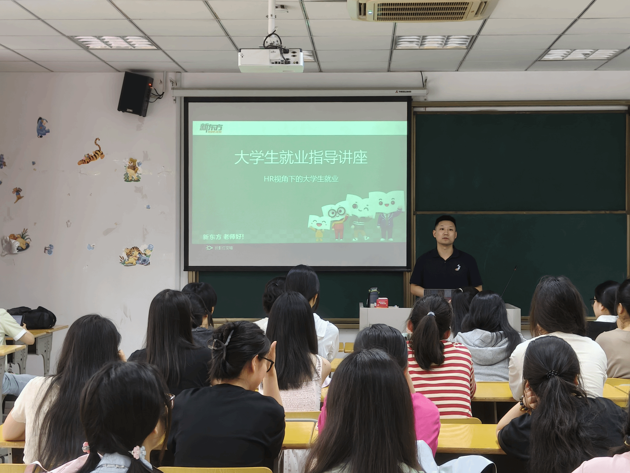在J212教室举办大学生就业指导专题讲座。合肥新东方培训学校有限公司人才招聘主管谢杨海担任主讲,2022级学生及毕业生代表共80余人参加。