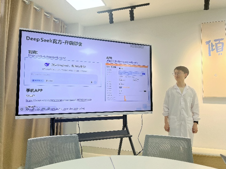 分享会上,钱智超首先以“如何与AI高效对话”为题进行分享。他深入浅出地介绍了大语言模型(LLMs)的基本原理,并重点讲解了DeepSeek工具的具体使用方法和提示词编写技巧。钱智超强调:“与AI对话不必过于拘泥于格式化的指令,将其视为一个具备理解能力的‘伙伴’,进行自然、清晰的沟通,往往能激发其潜力,获得意想不到的优质反馈。”他的分享为医护人员快速掌握AI工具的核心沟通技巧提供了实用指南。