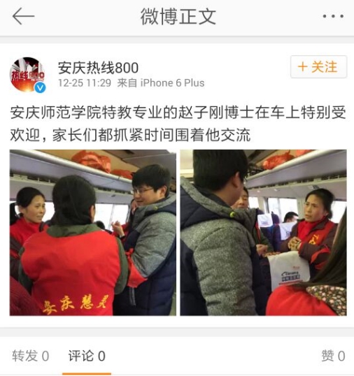 本次公益活动让特殊儿童乘坐高铁从安庆到南京,不仅让特殊儿童有效地融入社会,还让他们和家长在身心上得到放松,也让我们特殊教育的学生得到一次实践的机会,更引起了社会的广泛关注。