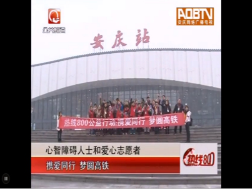 教育学院特殊教育专业赵子刚博士携三名特殊教育专业学生参加了由安庆电视台热线800栏目组和安庆慧灵、至爱之家等机构举办的 “携爱同行,梦圆高铁” 公益活动。