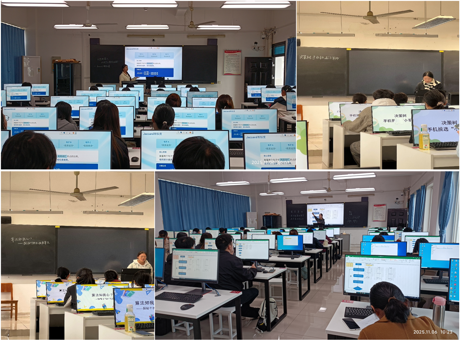 石化一中为本次教育实践活动做了精心部署和安排,通过“观摩学习+实践授课+点评总结”的全流程体验,让师生沉浸式感受一线教育教学场景。第一个环节是俞婷老师为本科生、研究生上了一堂精彩的教学示范课。俞婷先后在安徽省、全国高中信息技术优质课等诸多高级别比赛中获一等奖、二等奖多次,具有丰富的教学经验和出色的教学水平。她以“图像编码”为题,通过四项探究活动引导学生亲手操作图像数字化过程;学生提交实验成果后,系统即时给予个性化反馈,并布置针对性课后任务,让抽象的理论知识在实践中“活”了起来。课堂教学的主线非常清晰,活动设计非常精巧,利用生成式AI设计的模拟仿真平台和学习评价网页也让现场师生大开眼界,受益匪浅。