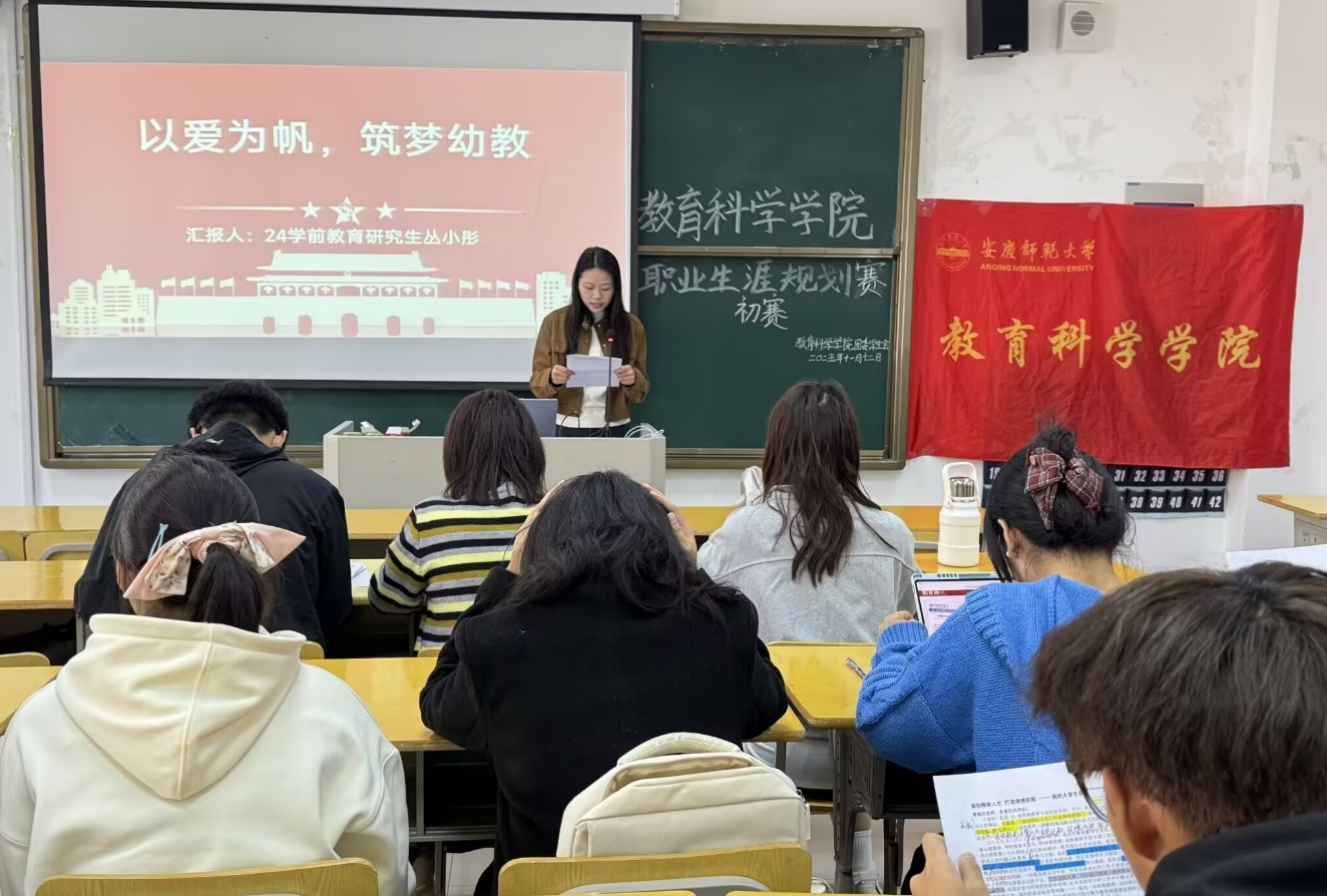在J214教室开展职业生涯规划大赛院赛。院团委副书记姚强诚、研究生汤德红、王雪及院学生会主席刘欣怡担任评委,主席团主席助理王思童主持,快猫
