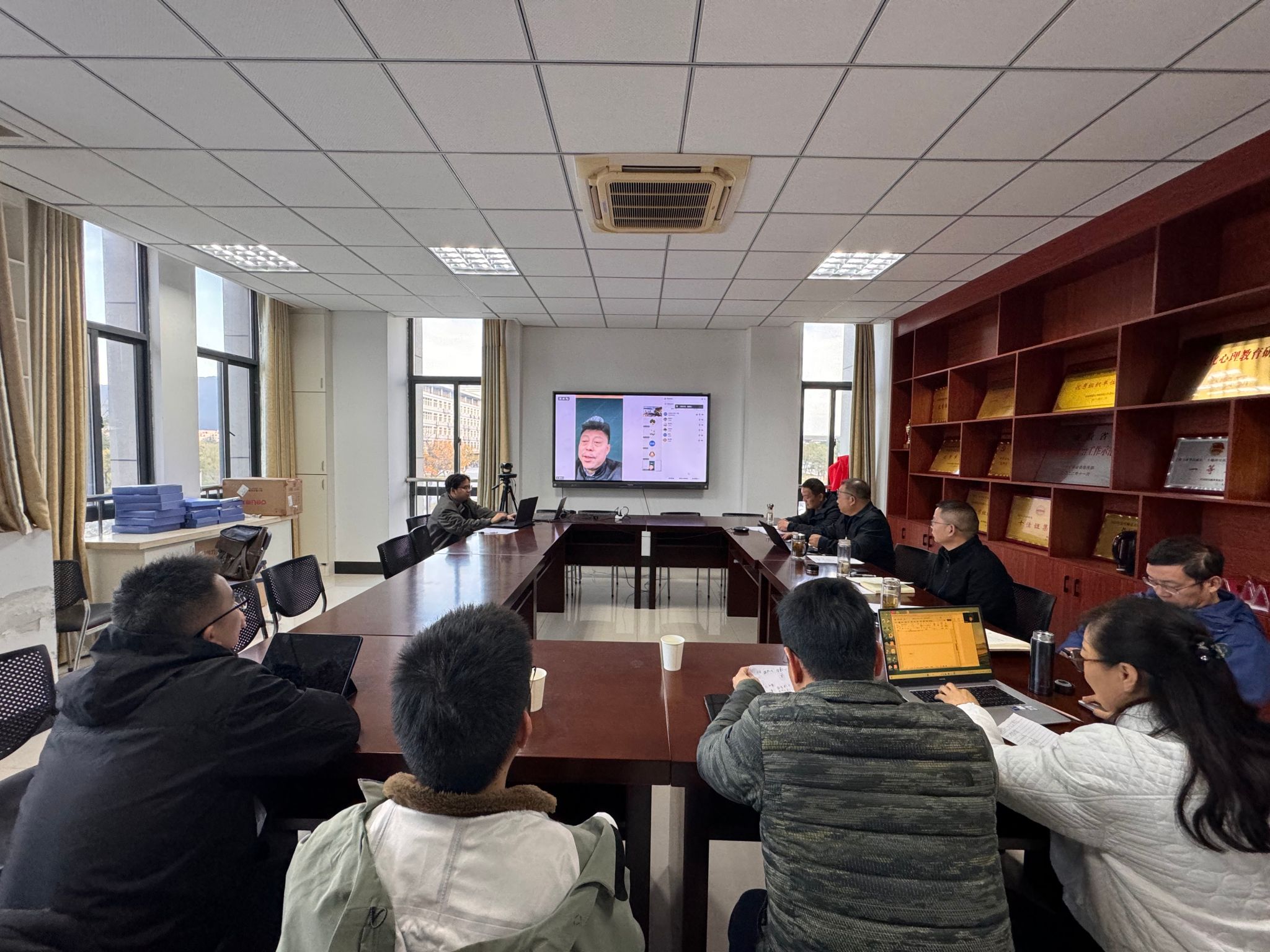 应用心理硕士专业学位授权点自我评估专家评议会在J202会议室召开。会议邀请北京大学吴艳红教授、南京师范大学陈庆荣教授、东北师范大学盖笑松教授、河北大学赵小军教授及安庆职业技术学院张铮教授等五位专家线上参会指导,学院党委书记何孔蛟、院长吴云助等领导班子成员、学位点负责人及相关教师参会,会议由吴云助院长主持。