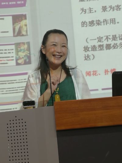 郭老师的讲座内容详实,她结合自身经历围绕戏曲艺术的审美特征(综合性、虚拟性、程式性)、戏曲舞台的表演艺术(水袖)、戏曲舞台的声腔艺术(唱念)等三个方面进行了阐述。戏曲舞台表现是“以歌舞来演故事”,是运用唱念、做、打以及行当、规定的程式技术技巧表现故事,无技不成戏,有技无戏等于瞎胡耍。