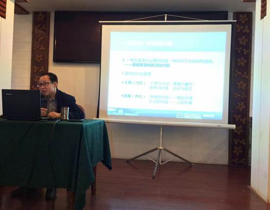 就幼儿园课程游戏化实践路径做了精彩报告。在报告中,主要介绍了现当代游戏的现状、老师与游戏的关系——真假游戏、游戏的本质、幼儿园游戏充当的角色等问题开展了分析。同时就幼儿园教育小学化和幼儿园游戏与课堂的有效结合做了案例分析与实践介绍。在报告行中结合目前幼儿园“小学化”现象和原因做了深度解剖,并结合鲜活的案例分析,引起了与会者的共鸣。同时提出了自己的理解和实践探索,还结合浙江安吉游戏的实证做出了高层次解析。报告中学生们专心致志并积极回馈,遇到产生共鸣的地方掌声此起彼伏。为快猫