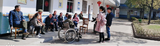 “你们都是小雷锋!”,一个年迈的老人竖起大拇指对着志愿者们如此说。这里一家距学校30分钟车程再加二十多分钟步行距离的敬老院,队员们每周都来陪这儿的老人聊天、做一些简单的家务以及一些娱乐活动,比如唱黄梅戏等。当天在聊及雷锋同志的时候引来了老人的称赞。