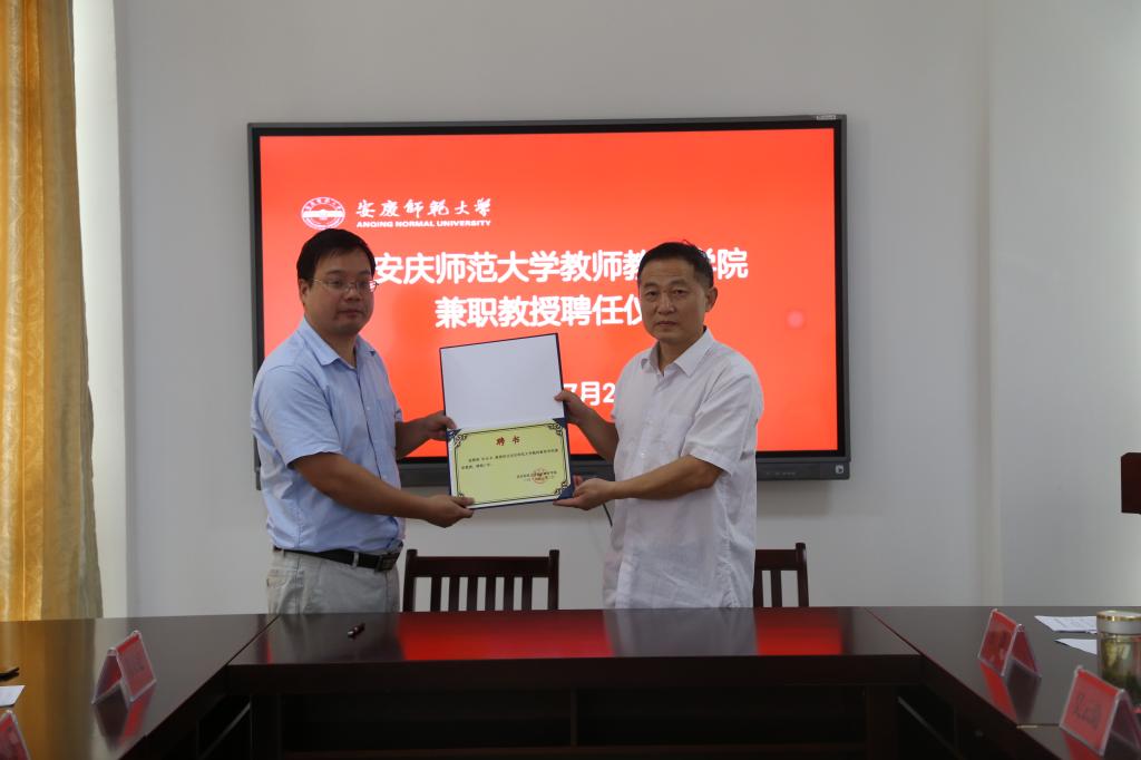 曹长德书记在讲话中表示,教师教育学院正在全面爬升阶段,面对新形势、新任务,需要在学科专业建设上发力。感谢两位教授不辞辛苦、万里迢迢来到安庆师范大学,愿以此兼职教授聘任为契机,进一步加深合作广度和深度,实现合作共赢。