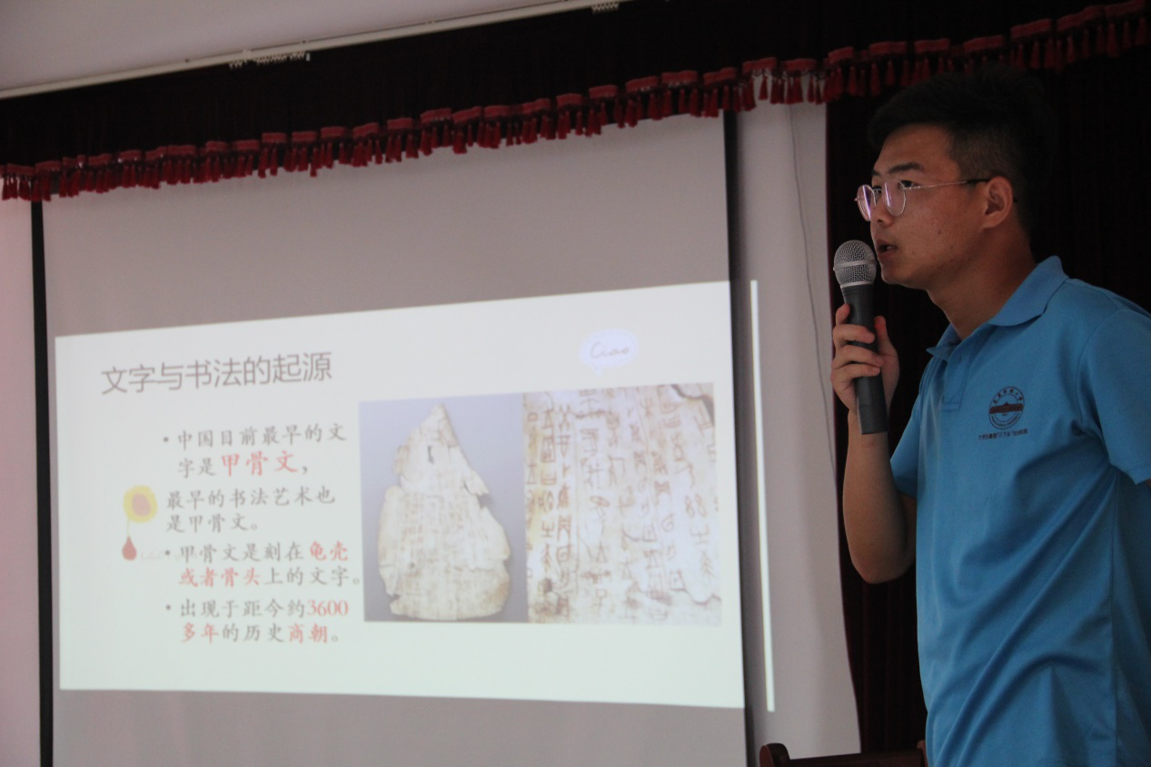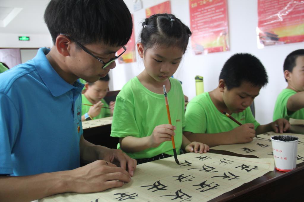 汉字书法为汉族独创的表现艺术,被誉为无言的诗、无行的舞、无图的画、无声的乐等。2019年7月18日,安庆师范大学“启智远航”教育实践服务团队来到了芭茅巷社区中心,由来自美术学院的志愿者张亮担任老师,为那里的孩子们带来了一场“汉字艺术大餐”。