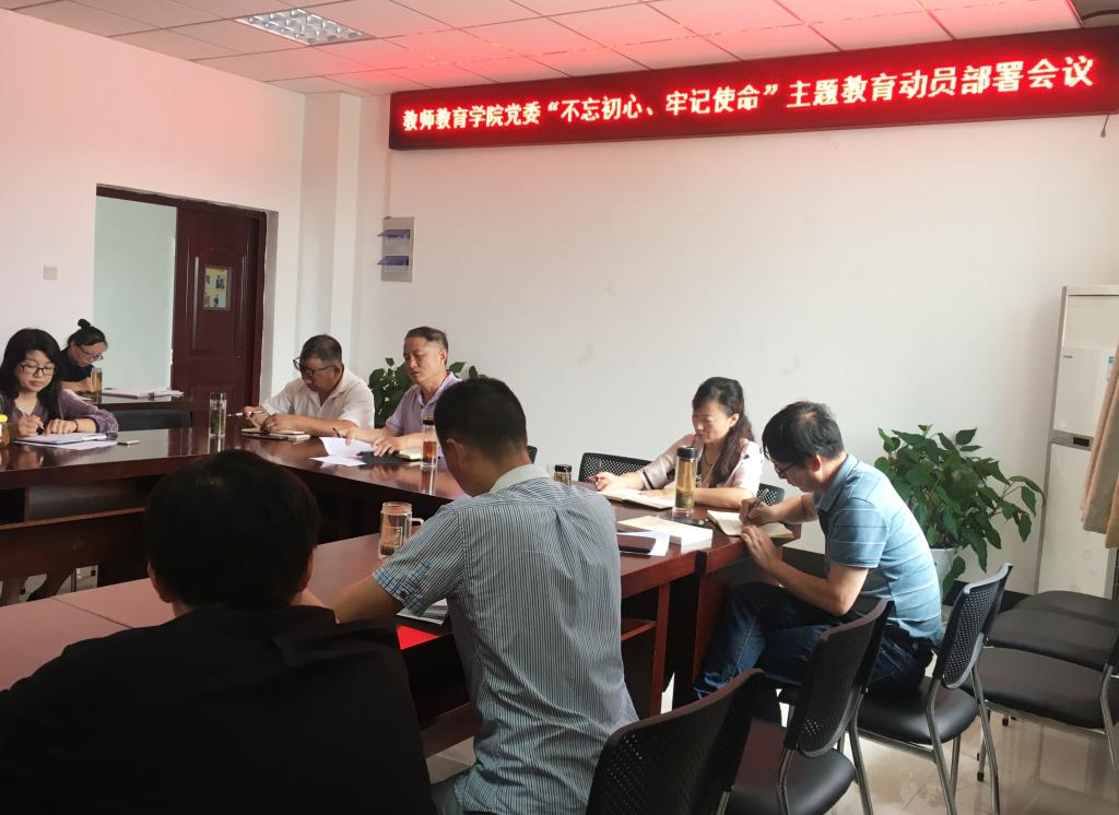 会议传达了学校“不忘初心、牢记使命”主题教育动员部署大会的内容和精神,传达了学校召开的“不忘初心、牢记使命”主题教育读书班开班式情况,学习了《中共安庆师范大学委员会开展“不忘初心、牢记使命”主题教育实施方案》。
