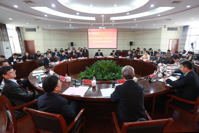 师范类专业所在学院主要负责人、教师教育学院领导班子成员、师范类专业负责人、小学教育专业全体教师和相关职能部门主要负责人参加了会议。(文/后娇娇 陈磊 图/陈广)