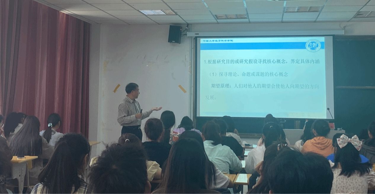 5月13日上午,河南大学教育学部教授张新海应邀在“红色园丁大讲坛”作报告,开展了题为“调查问卷的编制、检验与统计分析”的学术交流会,教师教育学院副院长陈效飞主持报告会,教师教育学院教育技术专业全体研究生、部分本科生及教师现场聆听。
