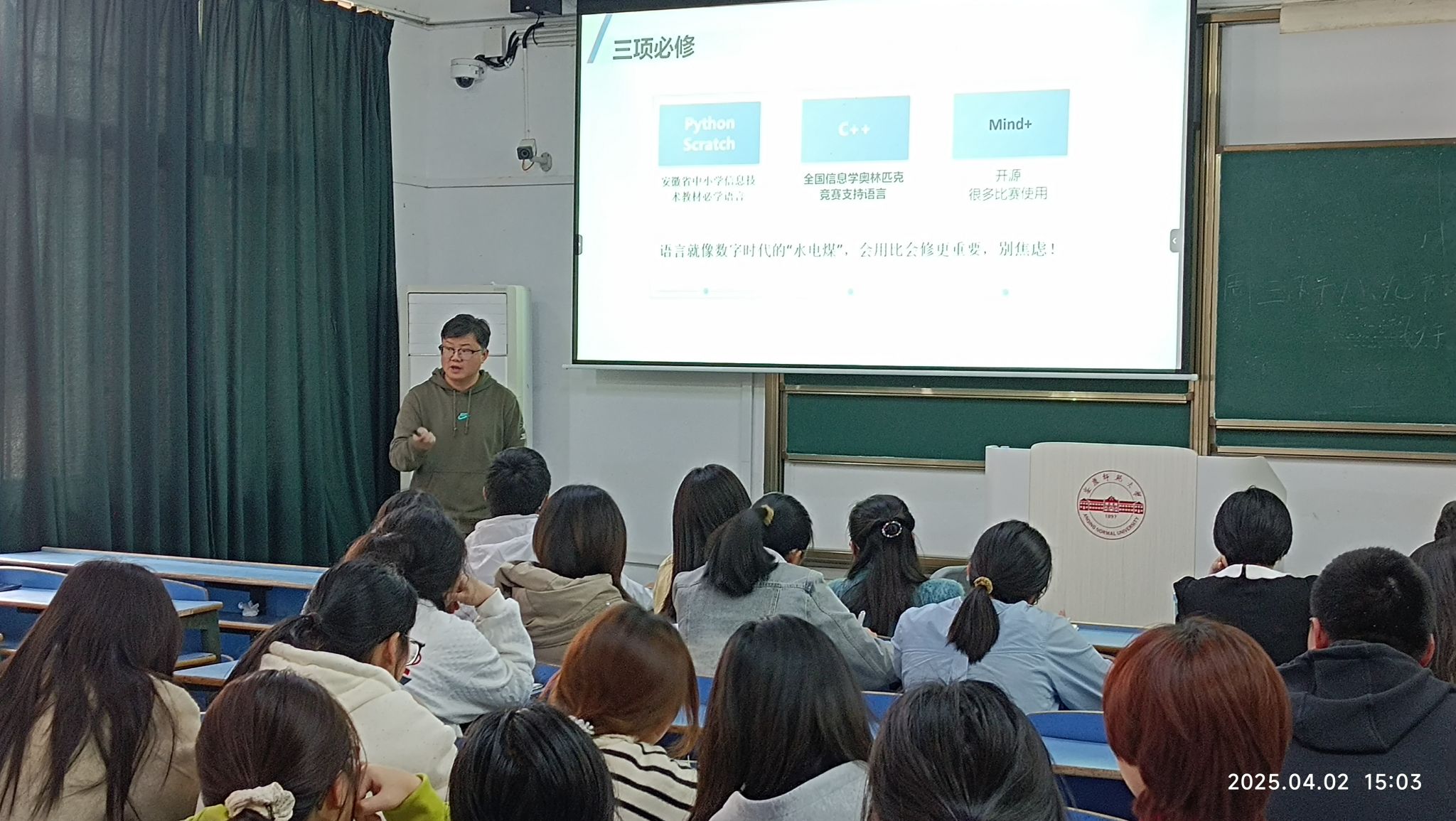 2025年4月2日,合肥一六八中学高中信息技术教师王玉峰应邀做客红色园丁大讲坛,作题为“信息技术教师职业发展规划”讲座。快猫 教师朱斌彬、万士全、杜杉杉、刘萌萌、查怀志,以及教育技术学专业本科生约60人参加报告会,会议由韦伟主持。安庆十四中丁象、安庆二中夏元平、石化一中王楠、安庆九中路雯婷、凌智等信息技术教师也莅临现场指导工作。